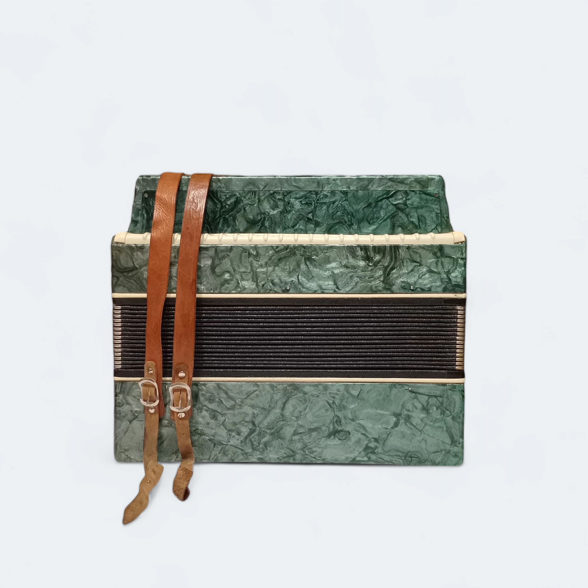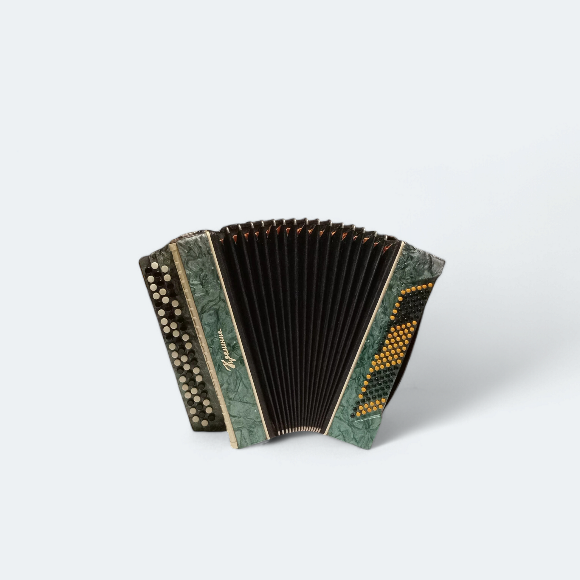 This bayan is in good condition. Although it is a vintage instrument, it remains fully functional and visually appealing.