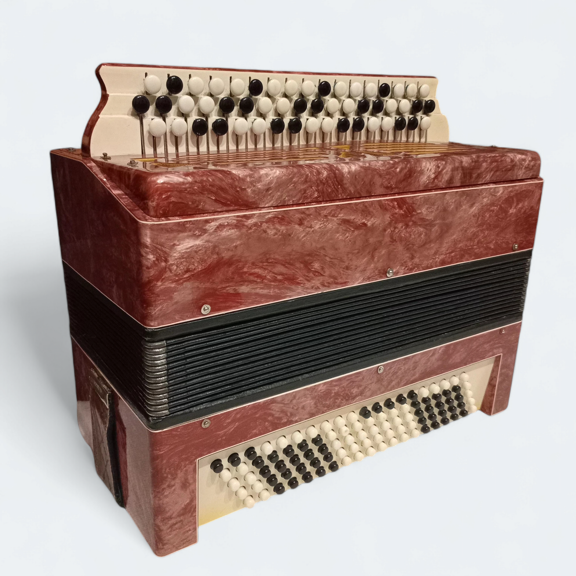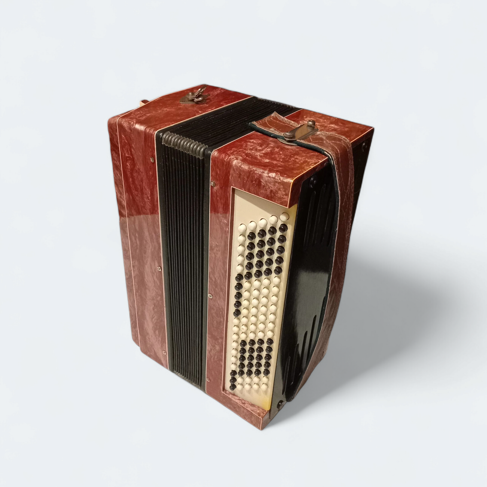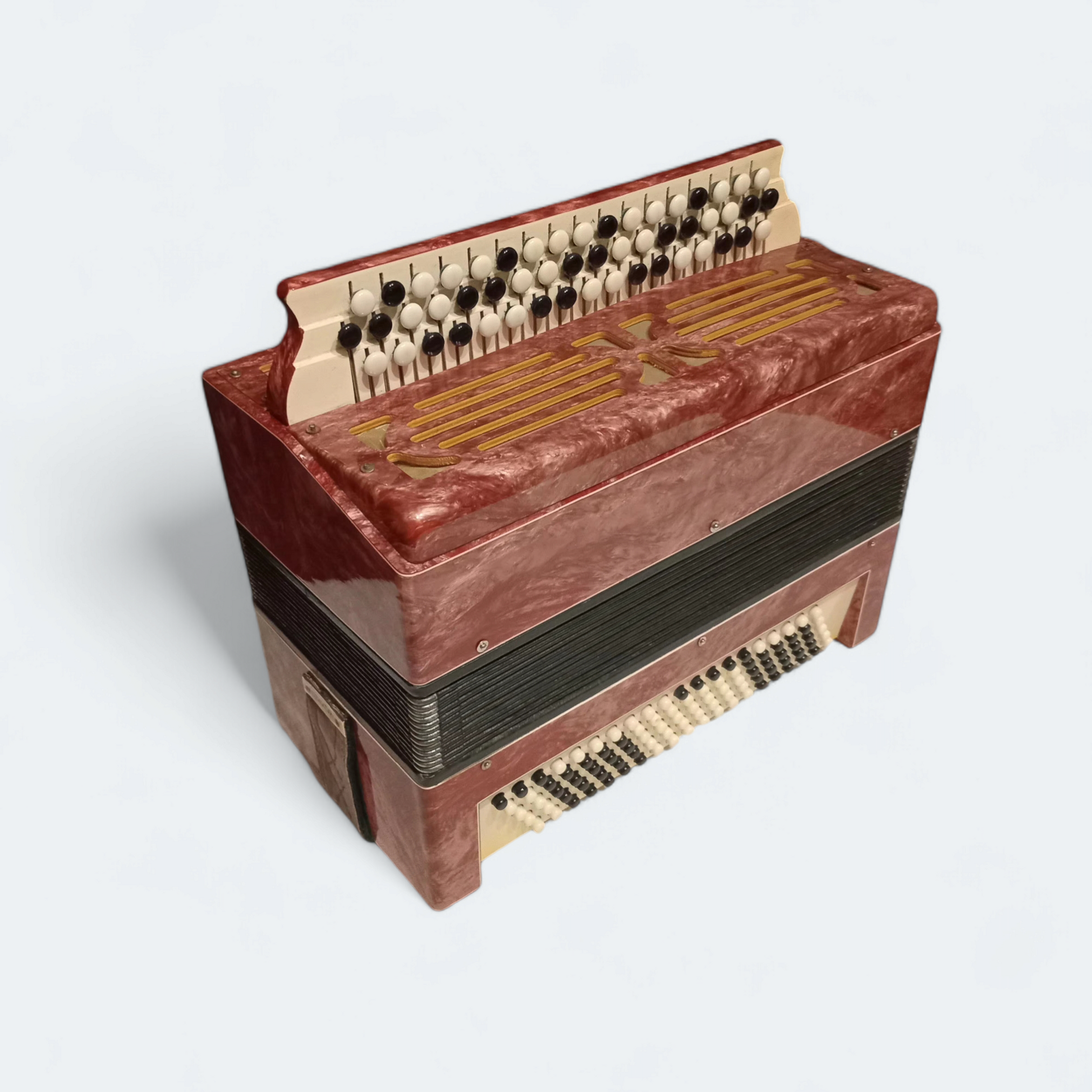 This bayan takes its name from Kungur, a town in Russia where it was created. Manufactured during the Soviet period, it is an outstanding instrument suitable for music schools and educational use. The Kungur accordion bayans are esteemed for their superior quality, on par with Tulski accordions, which are also distinguished Soviet instruments.