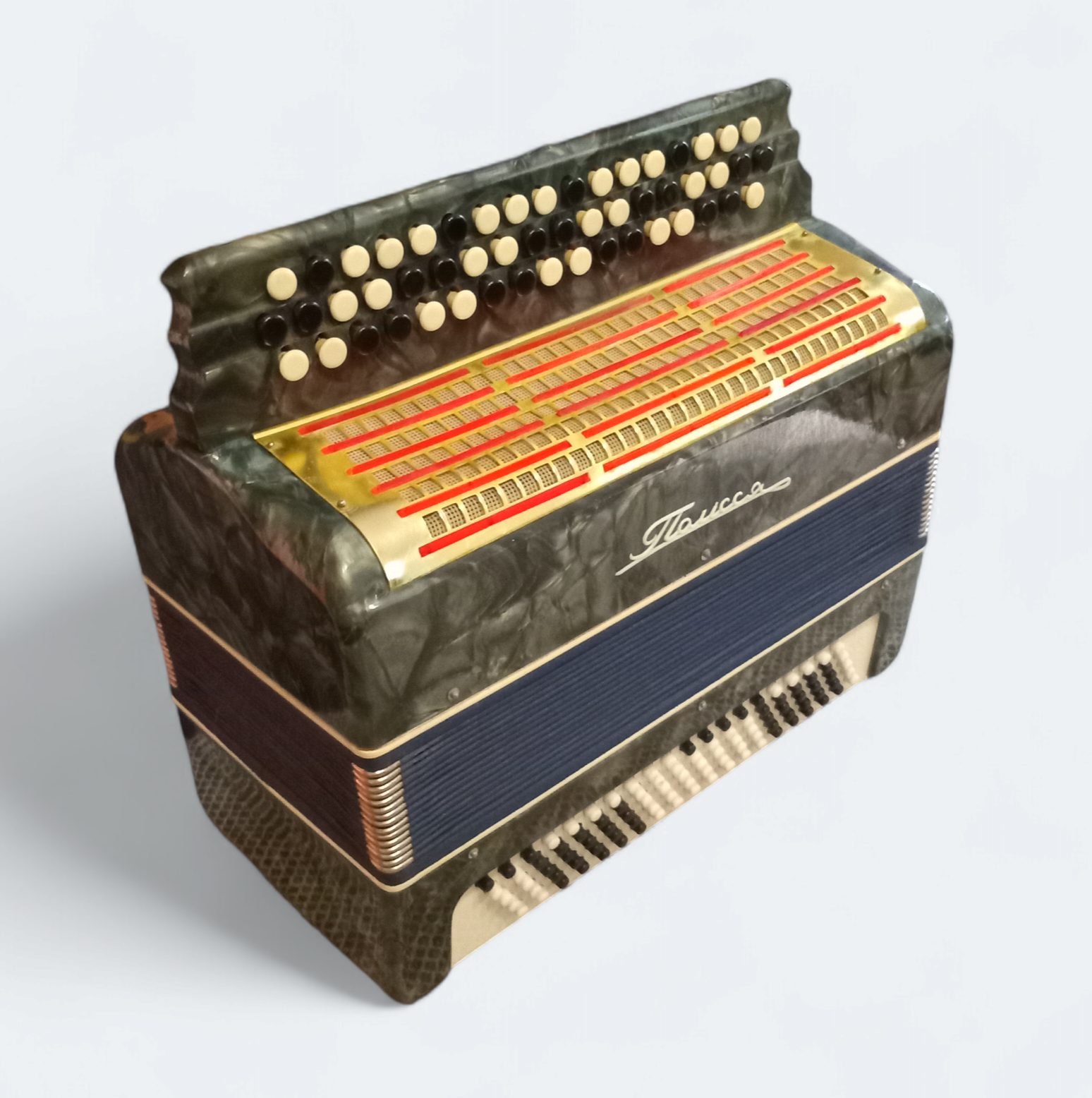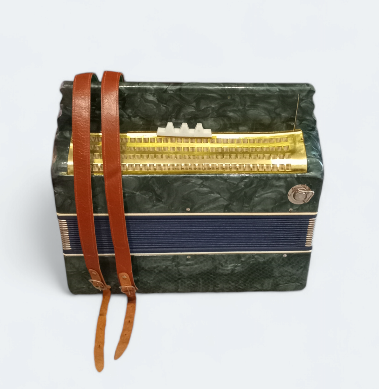 Despite being produced in the 1960s, this accordion remains in good condition and is fully operational, having seen limited use.
