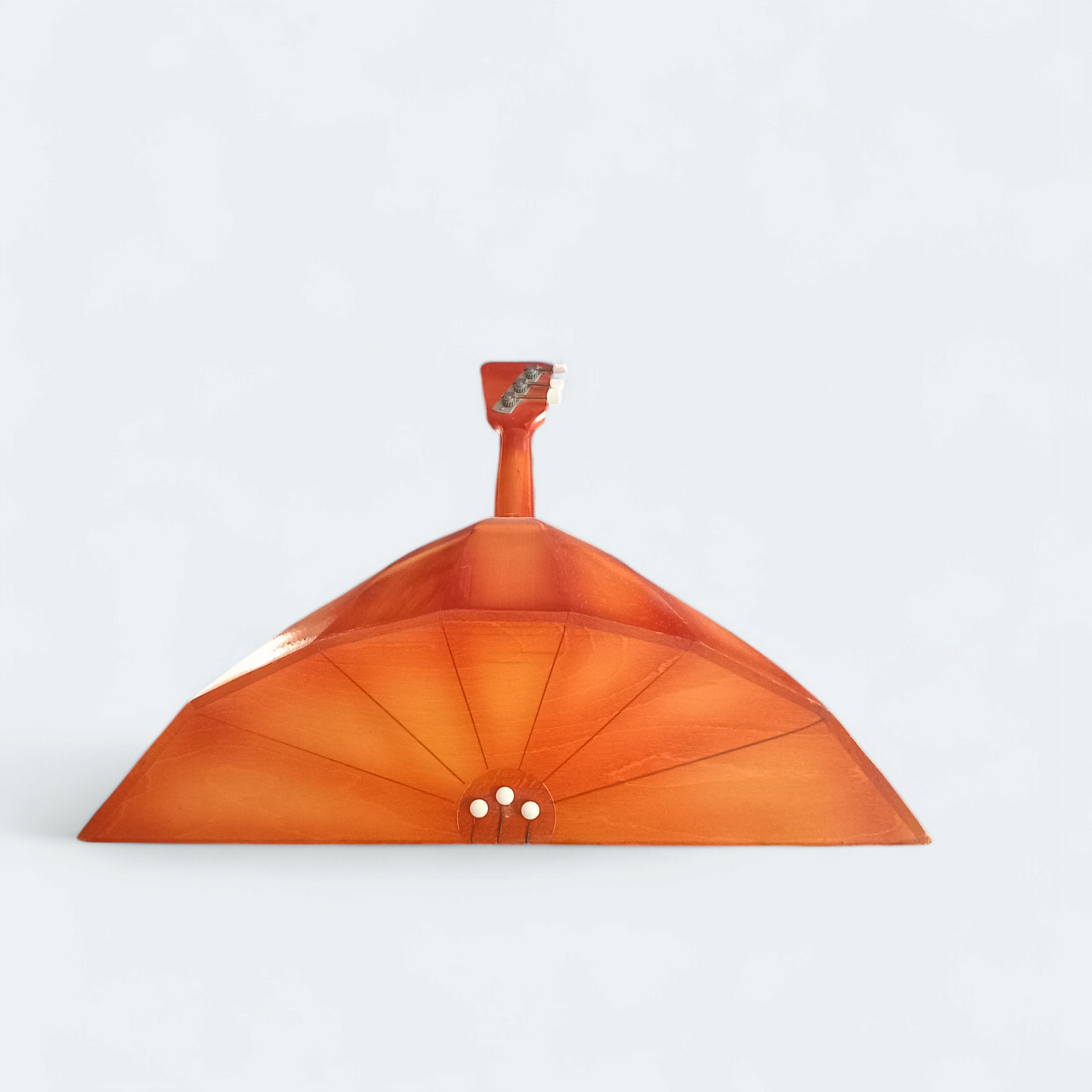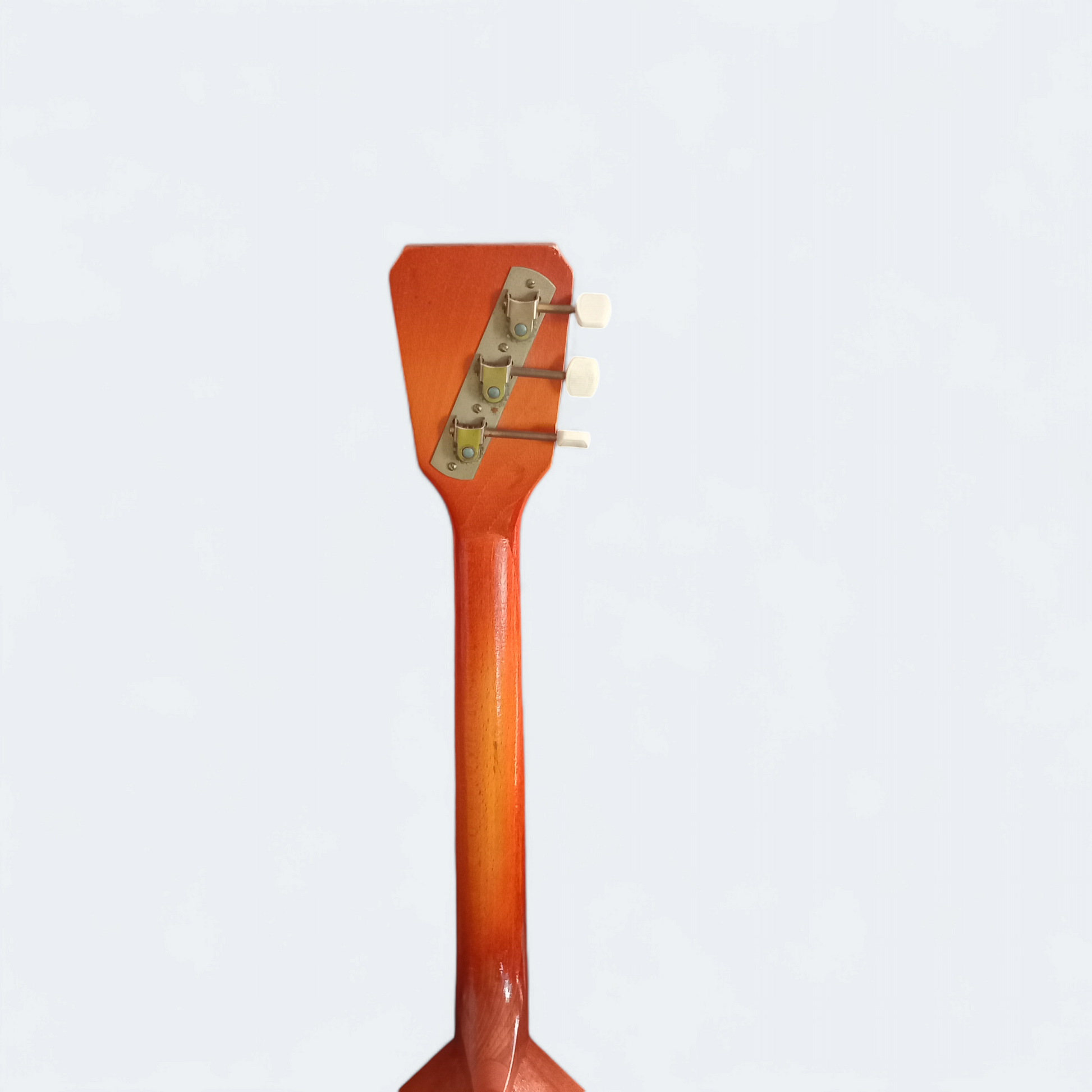 The balalaika is a traditional Russian string instrument distinguished by its unique triangular wooden body, hollow interior, fretted neck, and three strings. Typically, two of the strings are tuned to the same pitch, while the third string is tuned a perfect fourth above. The higher-pitched variants of the balalaika are primarily utilized for playing melodies and chords. Due to its short sustain, the instrument requires quick strumming or plucking techniques for melodic performance. Balalaikas are commonly associated with Russian folk music and dance.