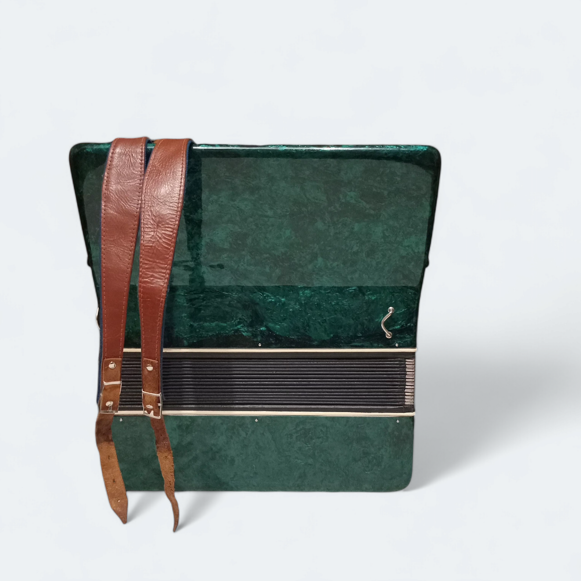 This accordion is in excellent working condition and appears nearly new with minimal signs of use.
