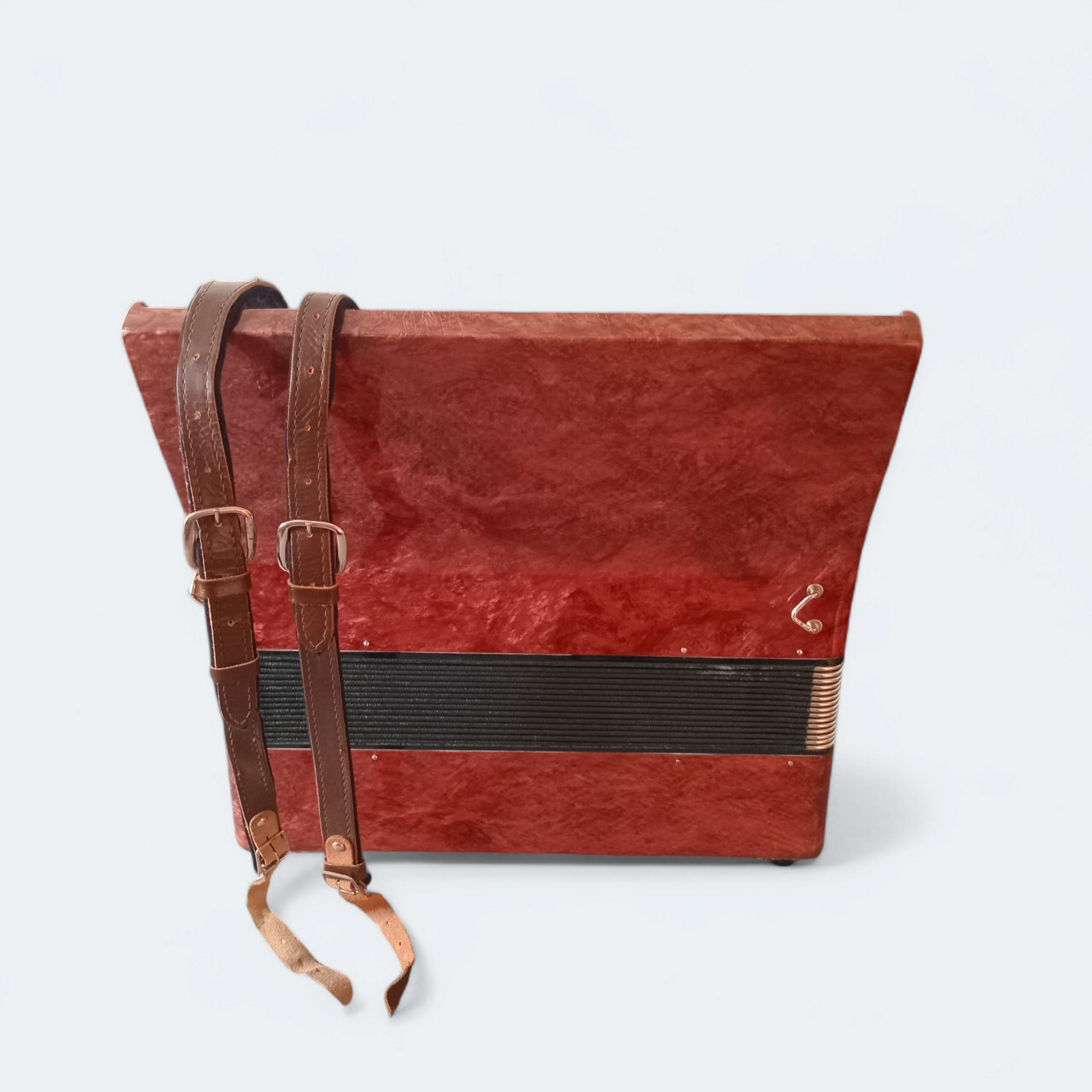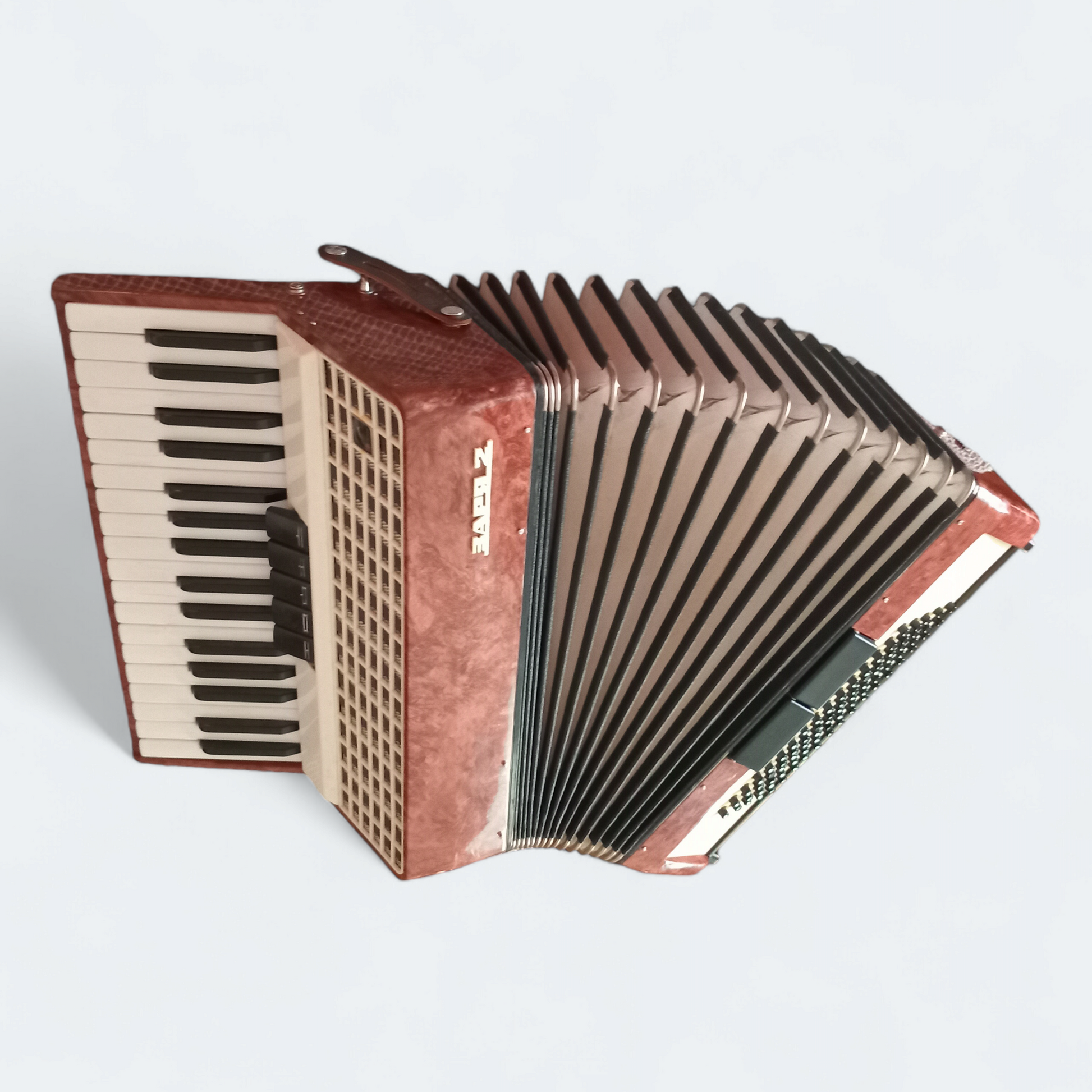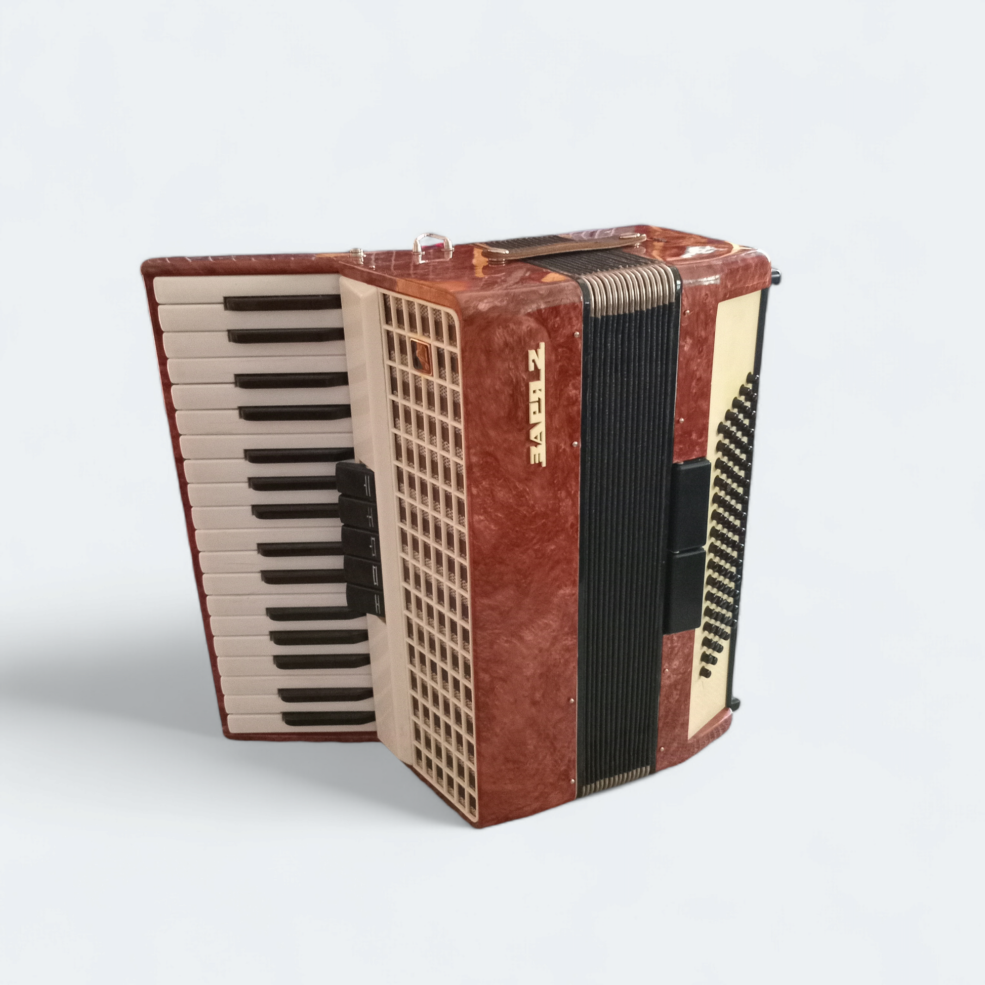 The piano accordion is characterized by a right-hand keyboard that closely resembles that of a piano or organ. Its keys are designed to be more rounded, smaller, and lighter than those found on traditional pianos.